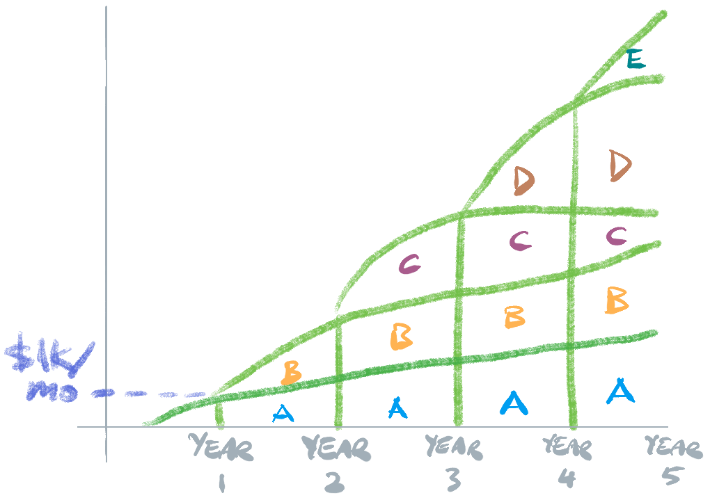 $1K/month is a realistic and achievable target for a new biz with no starting capital and no viral marketing. The goal is to generate an additional $1K/month profit (or more) from each new biz. You can then launch as many more biz as you want to add more +1Ks/month to your bank account.